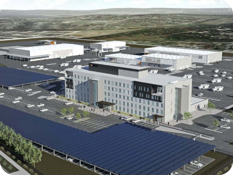 - Summary: Construction of five-story office building, fuel/general storage areas, maintenance space, shops and fleet parking. The project is LEED Platinum certified.